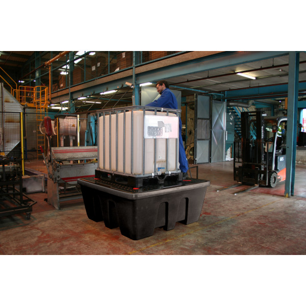 Bac de rétention avec caillebotis amovible finition polyéthylène recyclé pour 1 cubi de 1000 l - volume 1000 l (soit 100 % de rétention)