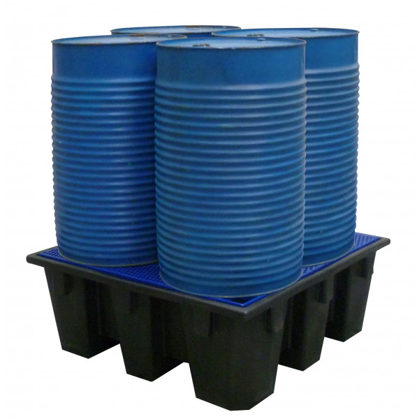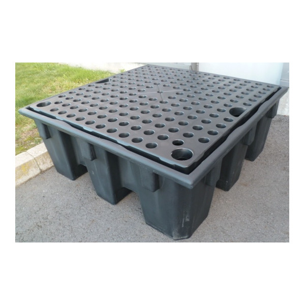 Bac de rétention ECO avec caillebotis en polyéthylène recyclé pour 4 fûts de 220 l - Volume 440 l