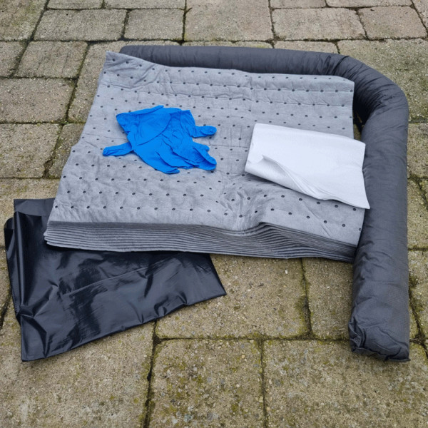Chaque kit contient les produits nécessaires à : Contenir et arrêter la propagation de la pollution (boudins). Absorber le liquide sur le sol (feuilles, coussins). Récupérer les déchets d’absorbants (sacs poubelles).Essuyer (essuyeurs).